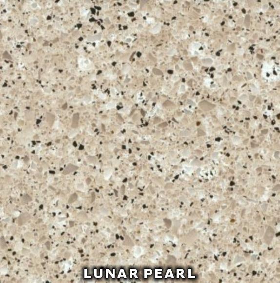 | Neutral taupe base with deeper tone-on-tone particles highlighted by crisp black particle. |